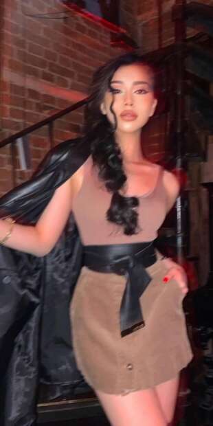 - Волосы: Брюнетка
